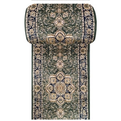 Zielony chodnik dywanowy Exclusive 03 N – klasyczny wzór, szerokość 100 cm, cięty na wymiar