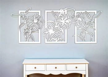 DEKORACYJNY TRYPTYK AŻUROWY, KWIATY, LILIE, DEKORACJA ŚCIENNA 3D, ORNAMENT, 60 x 160 cm, BIAŁY