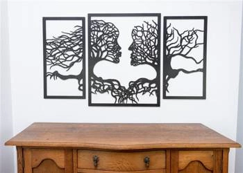 DEKORACYJNY TRYPTYK AŻUROWY, TWARZE, DRZEWO, DEKORACJA ŚCIENNA 3D, ORNAMENT, 70 x 120 cm, CZARNY
