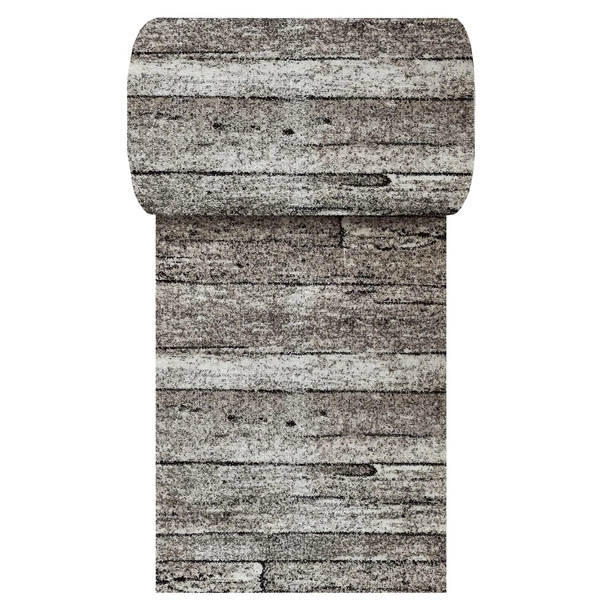 Chodnik dywanowy na metry Panamero 20 to doskonały wybór do przedpokoju, korytarza czy gabinetu. Nowoczesny wzór w odcieniach szarości i kremu przypomina strukturę postarzanego drewna, dodając wnętrzom loftowego i surowego charakteru.