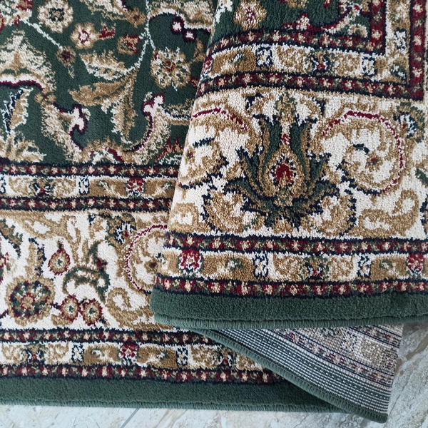Ekskluzywny zielony chodnik dywanowy na metry z kolekcji Exclusive 02 N to idealny wybór do eleganckich i reprezentacyjnych wnętrz. Klasyczny wzór z medalionem i bogatym ornamentem świetnie sprawdzi się w domach urządzonych tradycyjnie, a także w przestrzeniach takich jak kościoły, urzędy, kancelarie czy hotele.