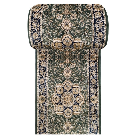 Zielony chodnik dywanowy Exclusive 03 N – klasyczny wzór, szerokość 90 cm, cięty na wymiar
