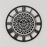 Duży czarny zegar ścienny FLORENCE wykonany ze sklejki o ażurowym wykończeniu, trzy rozmiary, ORNAMENTI