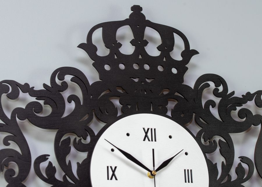Elegancki zegar ścienny ażurowy VITTORIO w kolorze czarnym, wykonany ze sklejki, ORNAMENTI