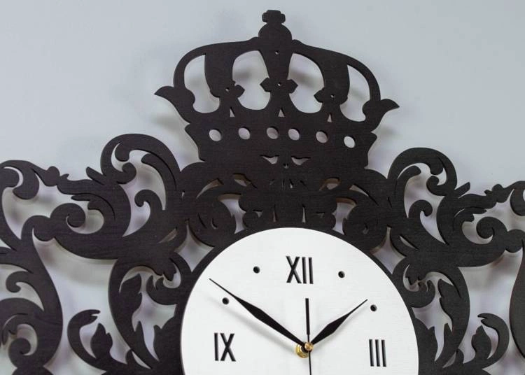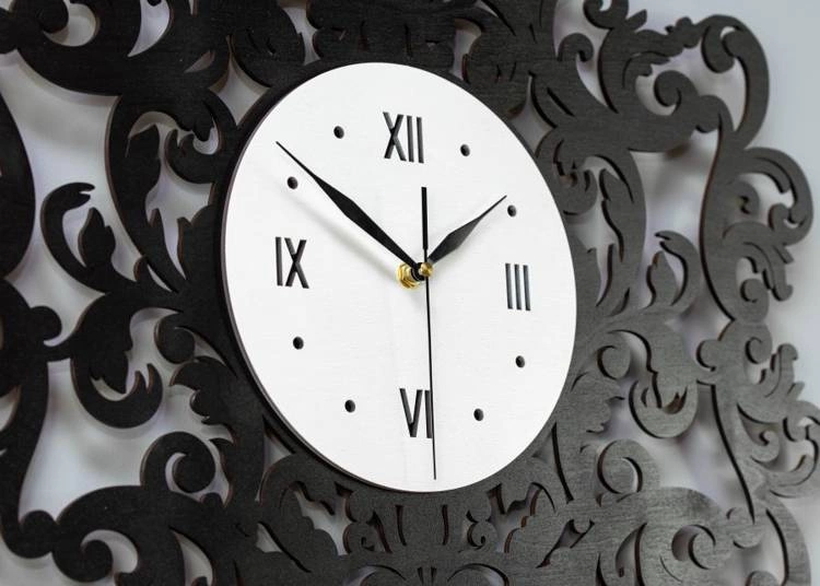 Ażurowy zegar ścienny VITTORIO został wykonany z solidnej i wytrzymałej sklejki brzozowej o grubości 4 mm