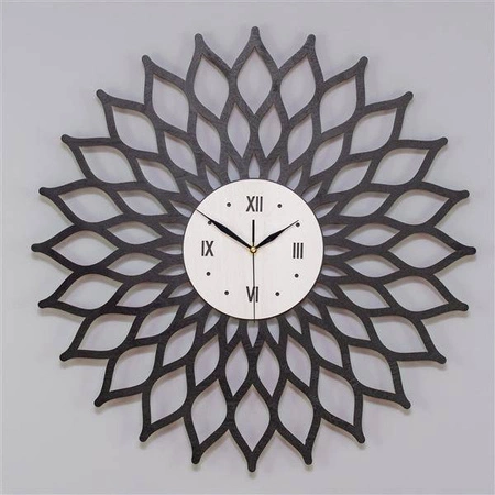 - Nowoczesny zegar ścienny SUNBURST czarny z ażurową tarczą inspirowaną kształtem słońca. Idealny do mieszkań urządzonych w stylu nowoczesnym i glamour.