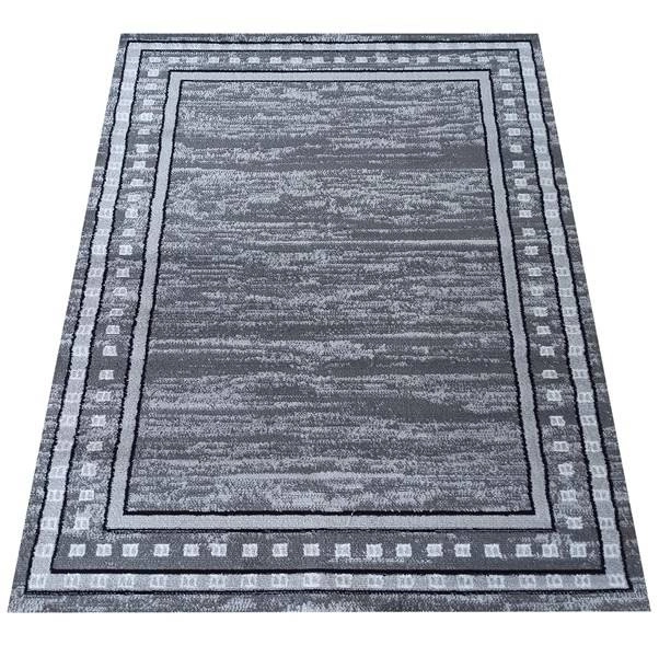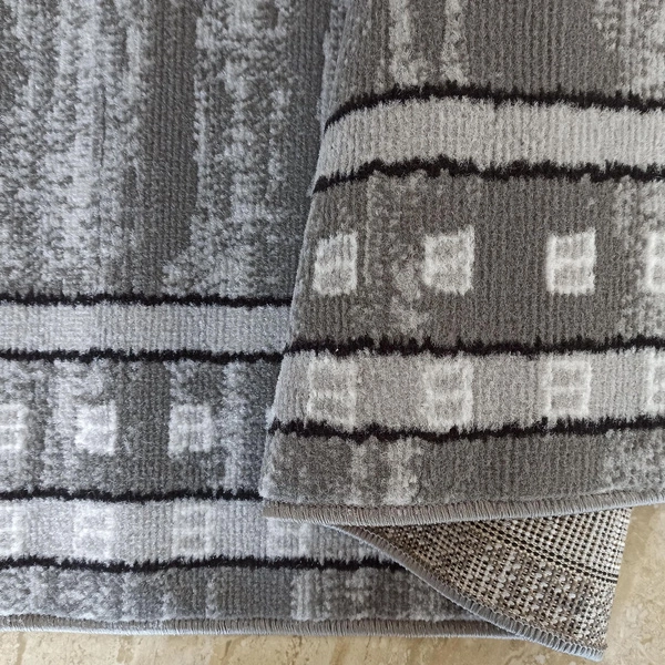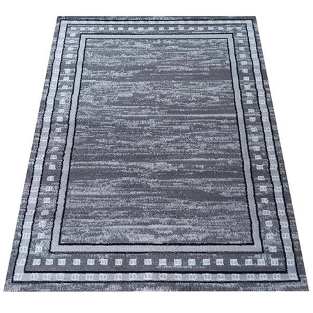 Dywan Soho 17 to propozycja dla osób ceniących nowoczesną elegancję i wizualny porządek. Dominującym motywem jest delikatna ramka z regularnym, geometrycznym zdobieniem, otaczająca jednolitą szarość centralnej części. Ten subtelny kontrast nadaje całości głębi i harmonii. Szarość dywanu nie jest płaska – widoczna jest subtelna faktura i tonalna zmienność, co sprawia, że powierzchnia wygląda naturalnie i interesująco. To wzornictwo, które dobrze odnajduje się zarówno w minimalistycznych wnętrzach, jak i bardziej eklektycznych aranżacjach, w których potrzebny jest neutralny, a zarazem dekoracyjny akcent.Trwałość, komfort i praktyczne rozwiązania