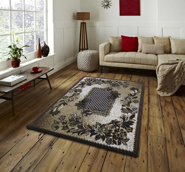 • Dywan Alfa 01 brązowy to elegancki model w klasycznym stylu, z bogatym wzorem kwiatowym i ciepłą, naturalną kolorystyką. Idealny do salonu, jadalni lub sypialni. Trwały, łatwy w czyszczeniu i odporny na użytkowanie.
