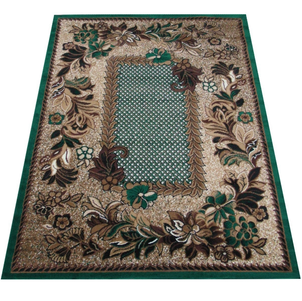 - Dywan Alfa 01 zielony to klasyczna kompozycja z kwiatowym motywem i geometrycznym środkiem. Ciepła kolorystyka i elegancki styl idealnie sprawdzą się w salonie, sypialni lub jadalni. Trwały i łatwy w pielęgnacji.