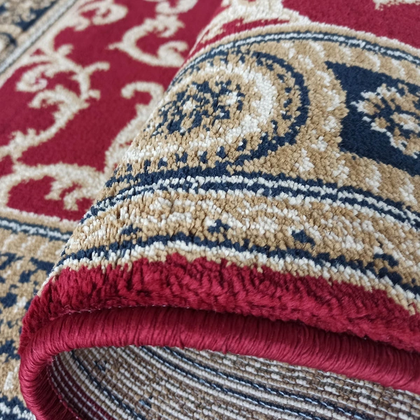 Ekskluzywny dywan z kolekcji Exclusive to najwyższa jakość wykonania, bogaty wygląd i klasyczne wzornictwo. Przyozdobiony tradycyjnym wzorem, który został podkreślony głęboką czerwienią w tle. Każde pomieszczenie, w którym się znajdzie nabierze stylu i elegancji. Doskonała propozycja do salonów, sypialni czy stylowych gabinetów urządzonych zarówno w stylu klasycznym, jak i nowoczesnym. Dywany z tej kolekcji zostały wykonane z najwyższej jakości materiałów. Są odporne na odkształcenia oraz odbarwienia.