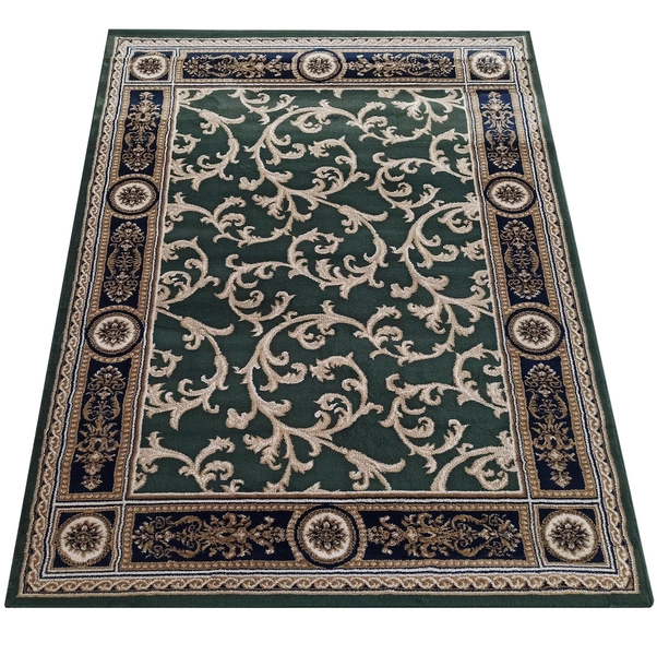 Ekskluzywny dywan z kolekcji Exclusive to najwyższa jakość wykonania, bogaty wygląd i klasyczne wzornictwo. Przyozdobiony tradycyjnym wzorem, który został podkreślony głęboką zielenią w tle. Każde pomieszczenie, w którym się znajdzie nabierze stylu i elegancji. Doskonała propozycja do salonów, sypialni czy stylowych gabinetów urządzonych zarówno w stylu klasycznym, jak i nowoczesnym. Dywany z tej kolekcji zostały wykonane z najwyższej jakości materiałów. Są odporne na odkształcenia oraz odbarwienia.