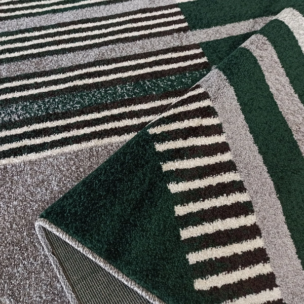 - Nowoczesny dywan OTTO 03 szaro-zielony z geometrycznym wzorem i modnym kolorem butelkowej zieleni. Miękki, trwały i certyfikowany OEKO-TEX. Idealny do salonu, sypialni lub biura.
