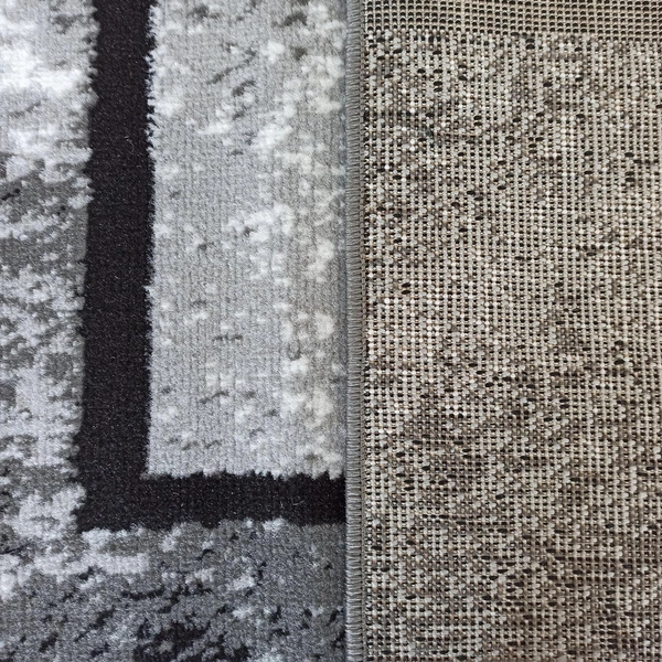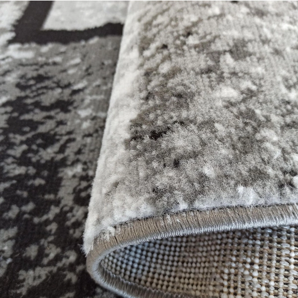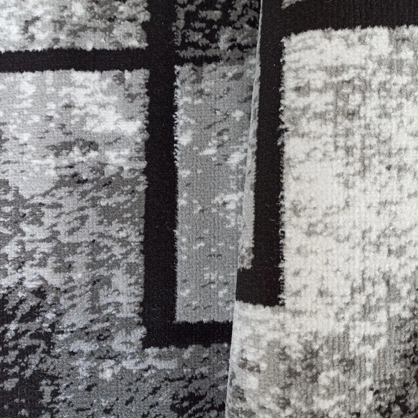 Dywan Soho 16 to wyrazista propozycja do nowoczesnych wnętrz. Jego powierzchnię zdobią przecinające się prostokąty i kwadraty, tworząc efekt wielowarstwowości i głębi. Ciemne kontury geometrycznych kształtów kontrastują z tłem w odcieniach bieli, szarości i grafitu, co nadaje całości dynamiczny i modernistyczny charakter. Wzór jest wyrazisty, ale nieprzytłaczający – dzięki temu pasuje zarówno do minimalistycznych aranżacji, jak i bardziej odważnych kompozycji wnętrzarskich. Soho 16 doskonale odnajdzie się jako centralny punkt przestrzeni dziennej lub dodatek przełamujący monotonię gładkich powierzchni.Trwałe wykonanie i przemyślana konstrukcja