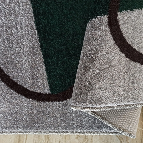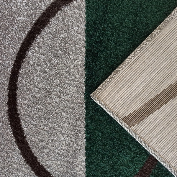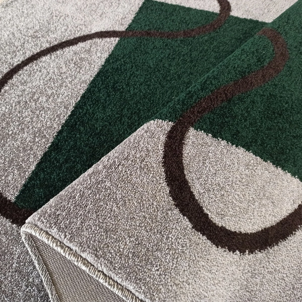 - Geometryczny dywan OTTO 08 w odcieniach szarości i butelkowej zieleni z kontrastową linią. Przędza heat set frise, runo 9 mm, certyfikat OEKO-TEX. Stylowy wybór do nowoczesnych wnętrz.