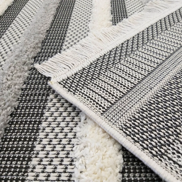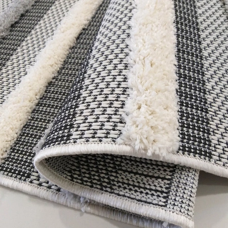 Dywan sprawdzi się jako dywan do wewnątrz, jak i dywan na taras. Wzór dywanu tworzą pasy w trzech stonowanych kolorach, z efektem trójwymiarowości dzięki zastosowaniu miejscami wyższego runa. Szary dywan DELI 03 wykonany jest z polipropylenu, a jego najwyższą jakość potwierdza certyfikat OEKO-TEX. Dywany wykonane z polipropylenu mają też wysokie właściwości antyelektrostatyczne. Dywan się nie elektryzuje, nie przyciąga do siebie kurzu, który nie wnika głęboko w struktury dywanu. Dzięki temu można czyścić dywan rzadziej, a i tak będzie utrzymany w nienagannej czystości, bo kurz i brud nie wnikną głęboko w dywan i zostaną na wierzchu włosia.