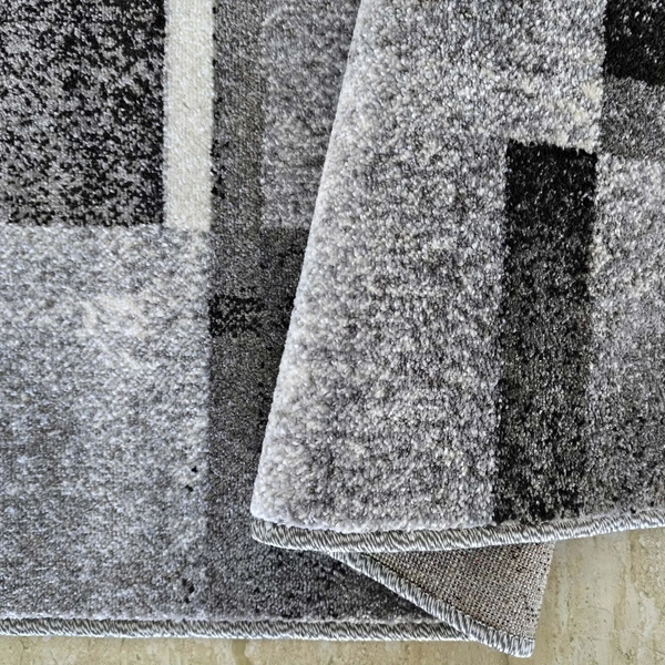 - Dywan OTTO 09 w odcieniach szarości i czerni z geometrycznym wzorem. Minimalistyczna forma, nowoczesny styl, certyfikat OEKO-TEX. Wysokość runa 9 mm, przędza heat set frise.