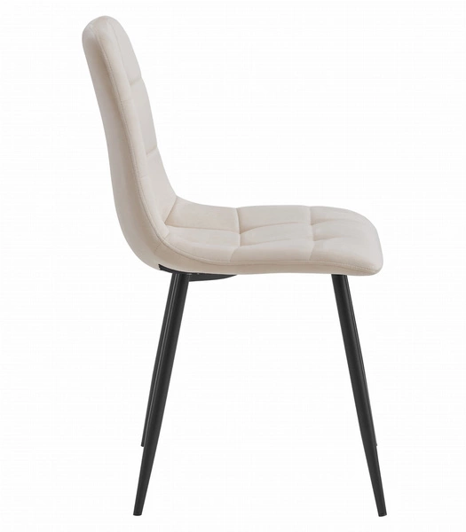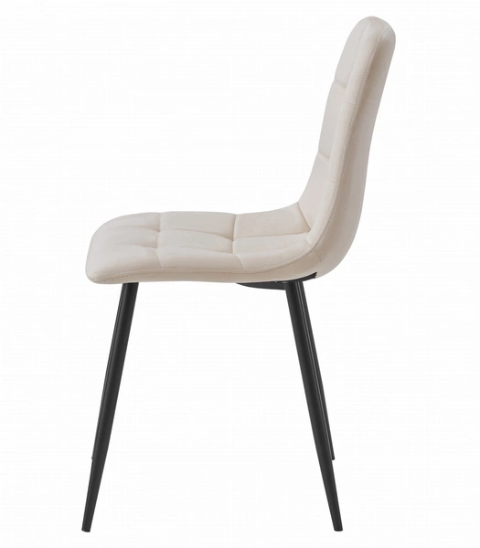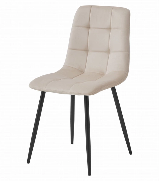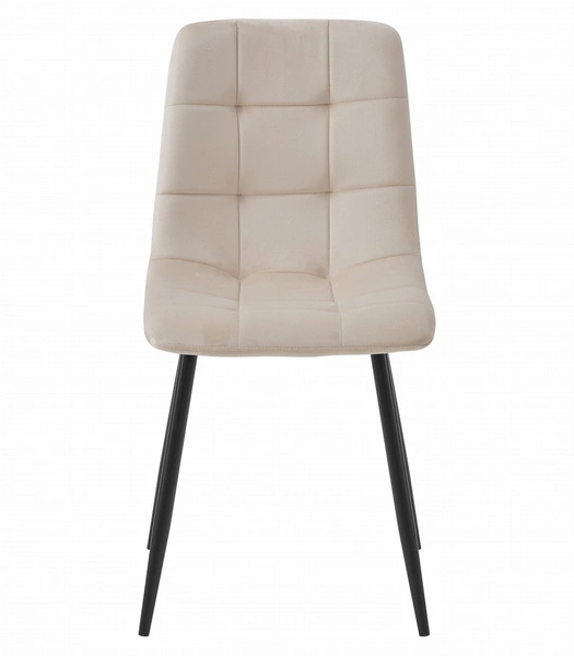 Proste beżowe krzesło KARA pokryte aksamitem - Tapicerowane krzesło kuchenne