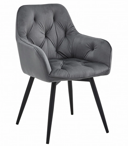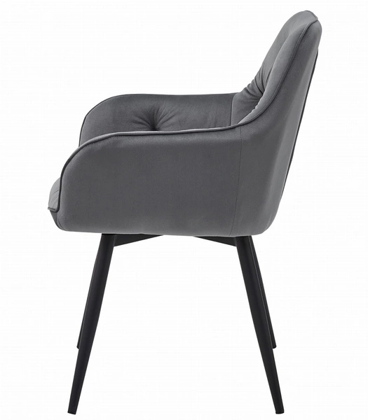 Krzesło JORK360: welurowe siedzisko, kolor ciemnoszary, metalowe nogi w kolorze czarnym. Wysokość siedziska 49 cm — pasuje do jadalni, kuchni i przestrzeni dziennej Spójne wymiary i materiały ułatwiają dopasowanie do stołu oraz podłogi.