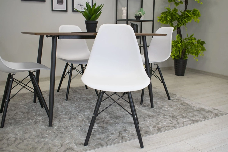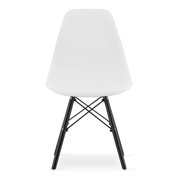 - Zestaw 4 krzeseł OSAKA: siedzisko z polipropylenu, kolor biały, drewniane nogi (kolor: drewno naturalne). Wysokość siedziska 44 cm — pasuje do jadalni, kuchni i przestrzeni dziennej
