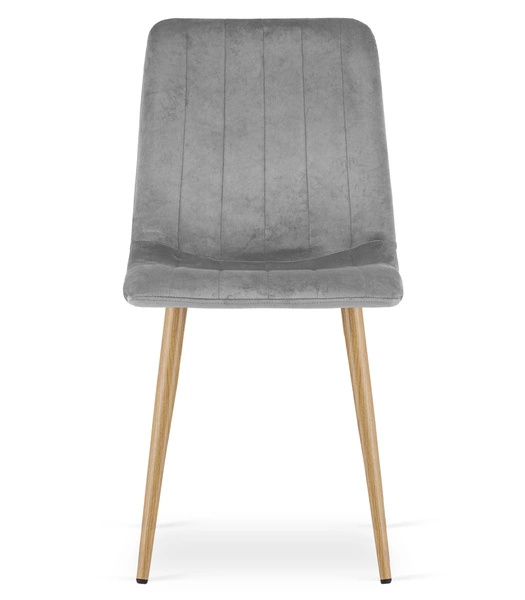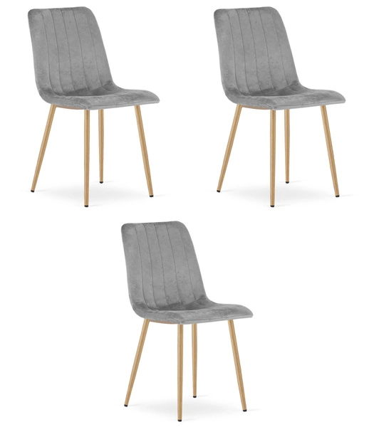 "Krzesło LAVA - jasny szary aksamit / nogi kolor drewna x 3"