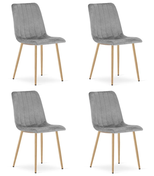 "Krzesło LAVA - jasny szary aksamit / nogi kolor drewna x 4"
