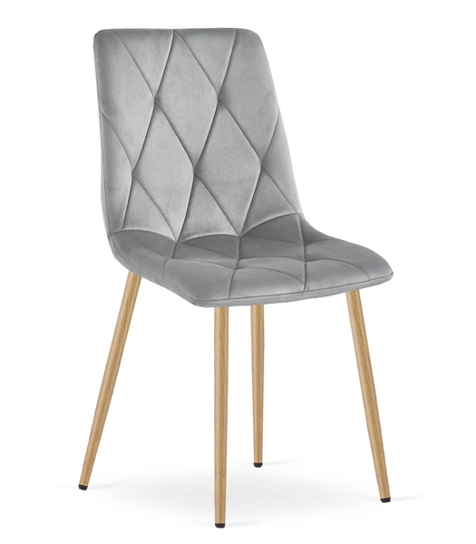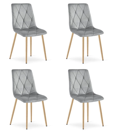 "Krzesło LIBRA - jasny szary aksamit / nogi kolor drewna x 4"