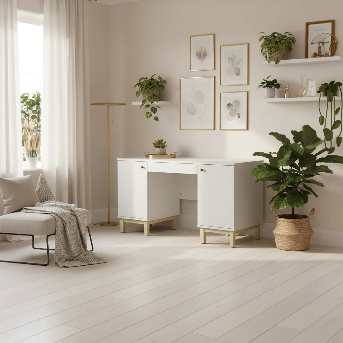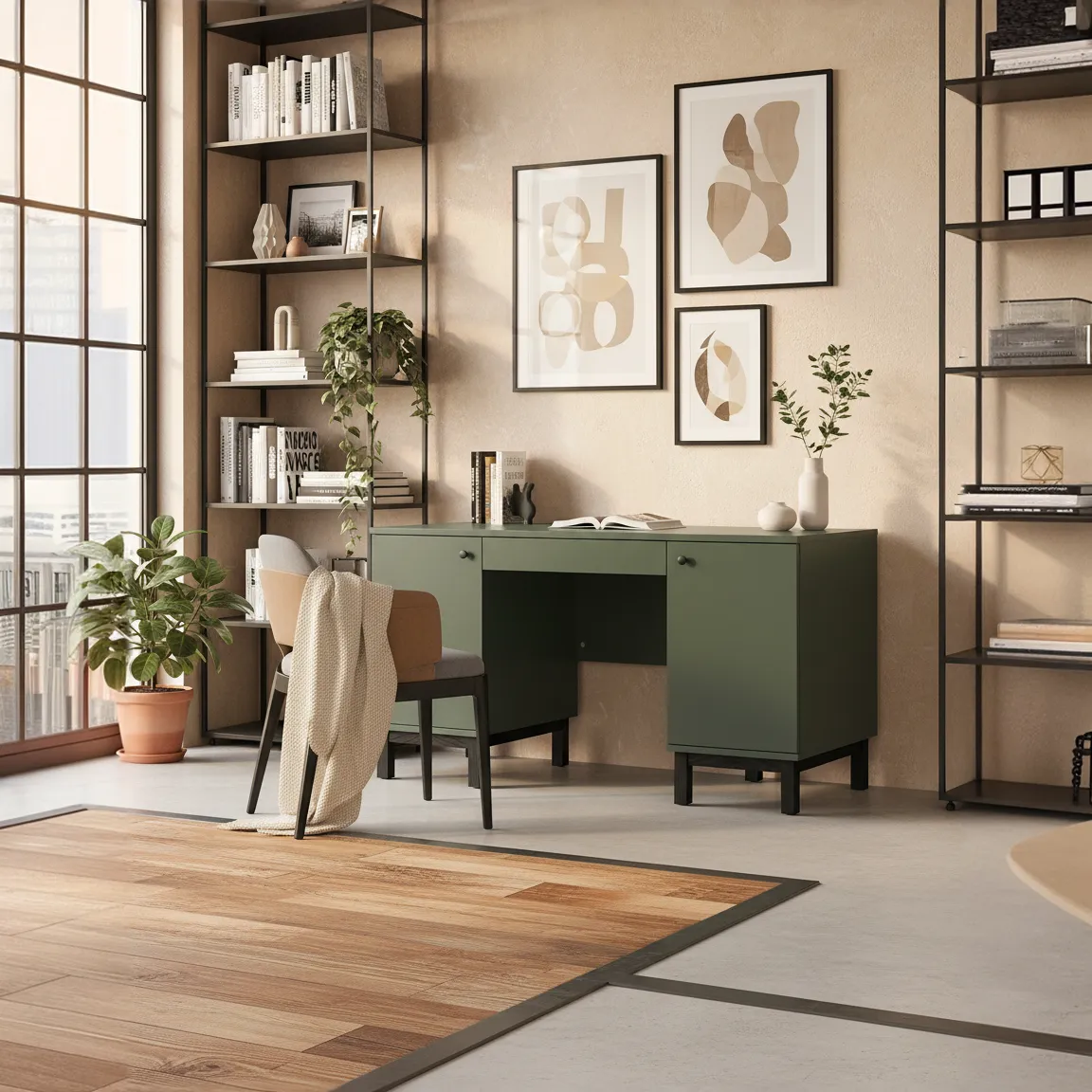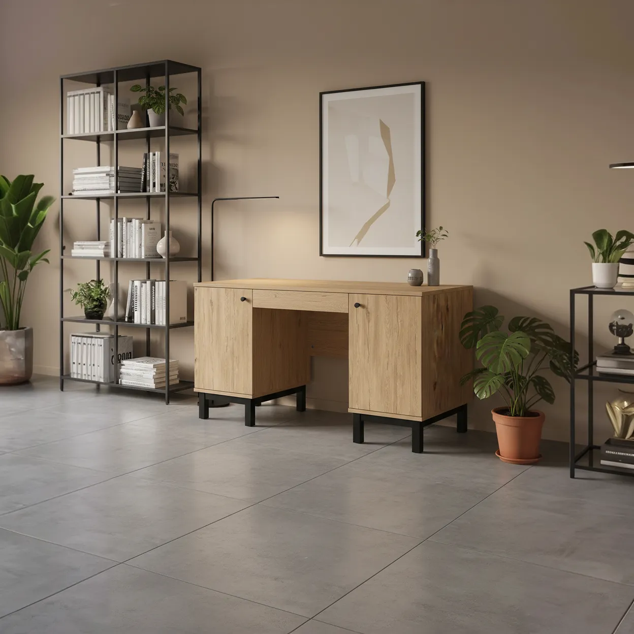 Biurko do domowego biura B-MODEL-2 — porządek w dwóch szafkach i szufladzie podblatowej