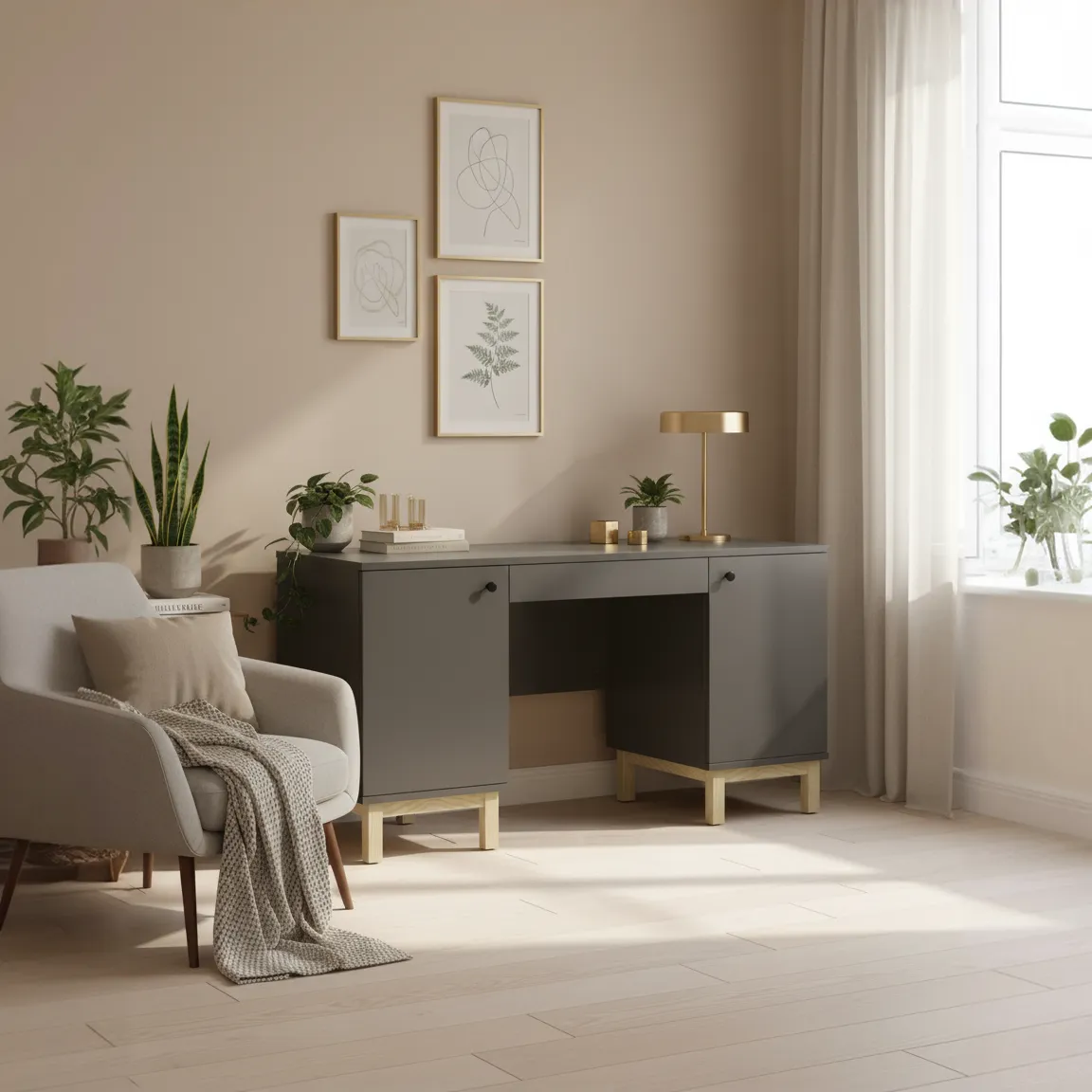 Czasem wystarczy jedno dobrze zaprojektowane biurko, żeby poranki zaczynały się spokojniej, a praca nie kojarzyła się z chaosem. B-MODEL-2 oferuje szeroki blat, na którym zmieścisz laptop, monitor, lampkę i ulubiony kubek, a jednocześnie zostanie miejsce na notatki i szkice. Wszystko, co nie musi leżeć na widoku, ma swoje miejsce w dwóch bocznych szafkach o szerokości 39 cm oraz w wygodnej szufladzie podblatowej. Dzięki temu na wierzchu zostają tylko te rzeczy, które naprawdę są Ci potrzebne w danej chwili, a reszta czeka uporządkowana w środku.