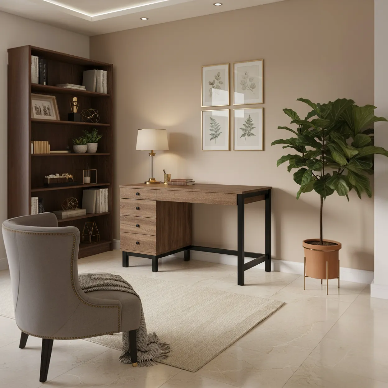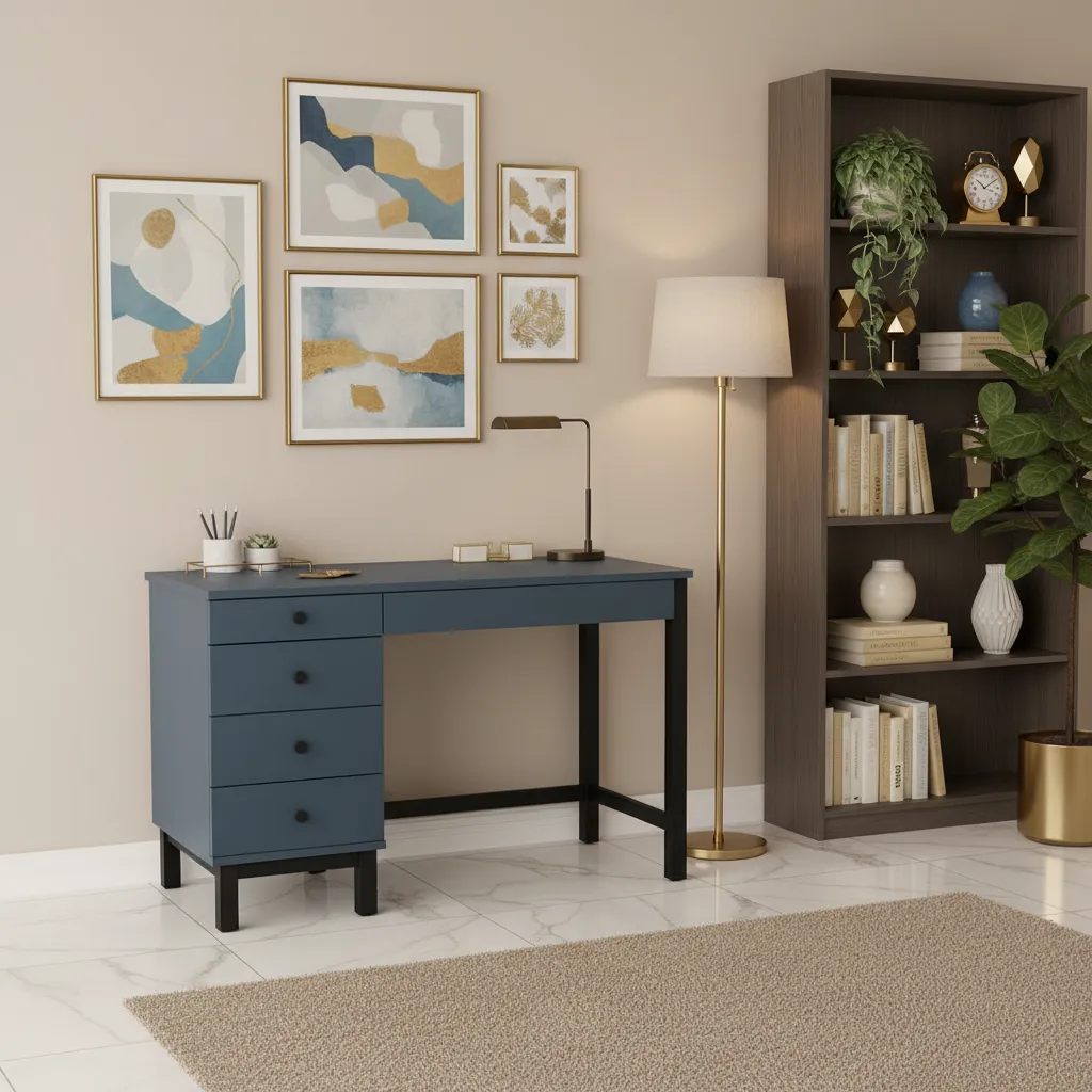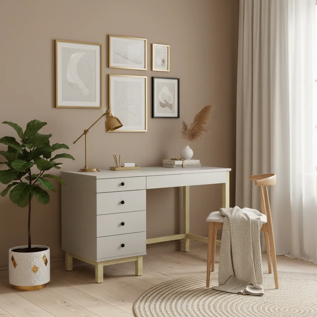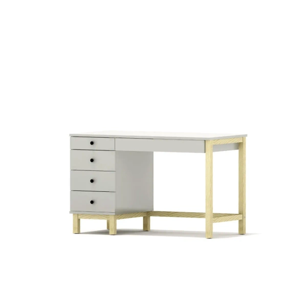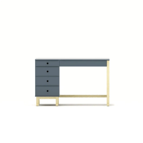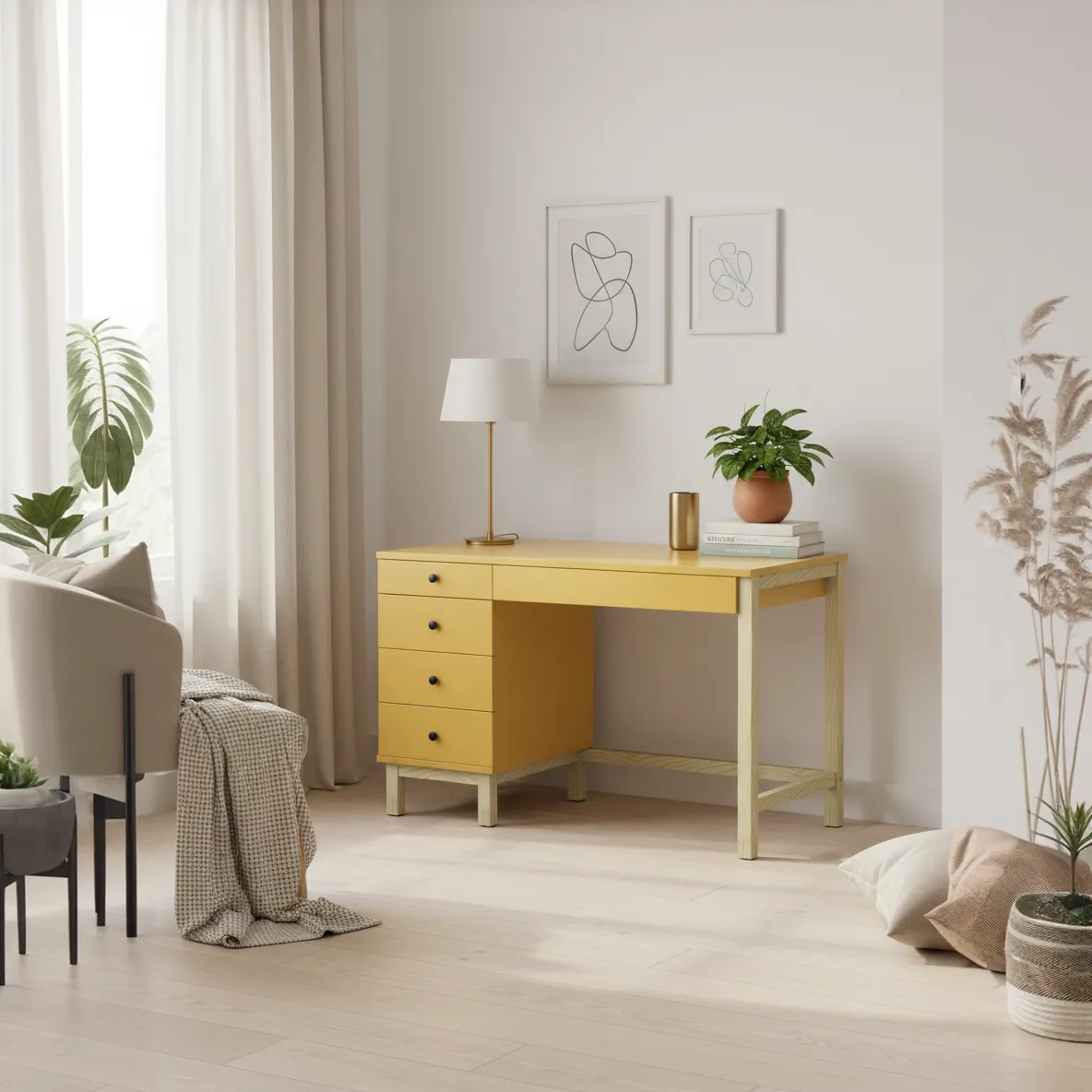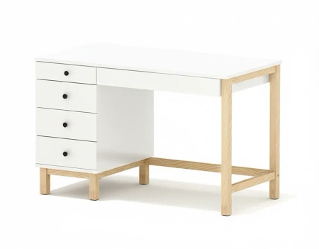 Są meble, które stoją w kącie, i są takie, które naprawdę wpływają na to, jak wygląda Twój dzień. Biurko B-MODEL-3 należy właśnie do tej drugiej grupy. Szeroka szuflada tuż pod blatem pozwala szybko ukryć to, co rozprasza — klawiaturę, szkicownik, notatki — pozostawiając przed Tobą czystą, spokojną powierzchnię, która zachęca, by zacząć od nowa. Obok znajduje się rytmiczny układ czterech szuflad, dzięki którym wszystko ma swoje miejsce. Ta drobna organizacja sprawia, że poranek zaczyna się łagodniej, a myśli płyną swobodniej, bez przeszukiwania szuflad i niepotrzebnego chaosu.