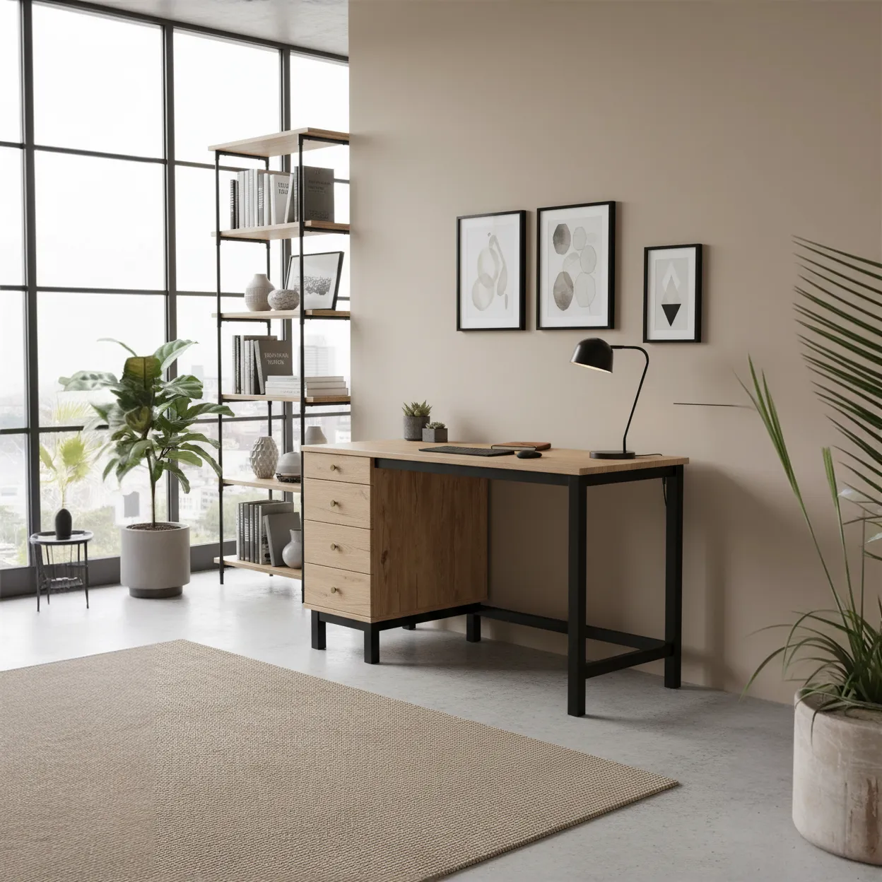 Biurko VERYSIMPL B-MODEL-4 możesz zamówić jako beżowe biurko, białe biurko, grafitowe biurko oraz dębowe biurko w dekorach drewna, takich jak Piaskowy Dąb Barbera, Dąb Orzech Silverjack czy ciemniejszy Dąb Czekoladowy Hudson. Neutralne beże i biele odnajdą się w aranżacjach scandi, grafit podkreśli nowoczesny lub industrialny charakter wnętrza, a dębowe dekory dodadzą ciepła i elegancji gabinetowi lub salonowi.