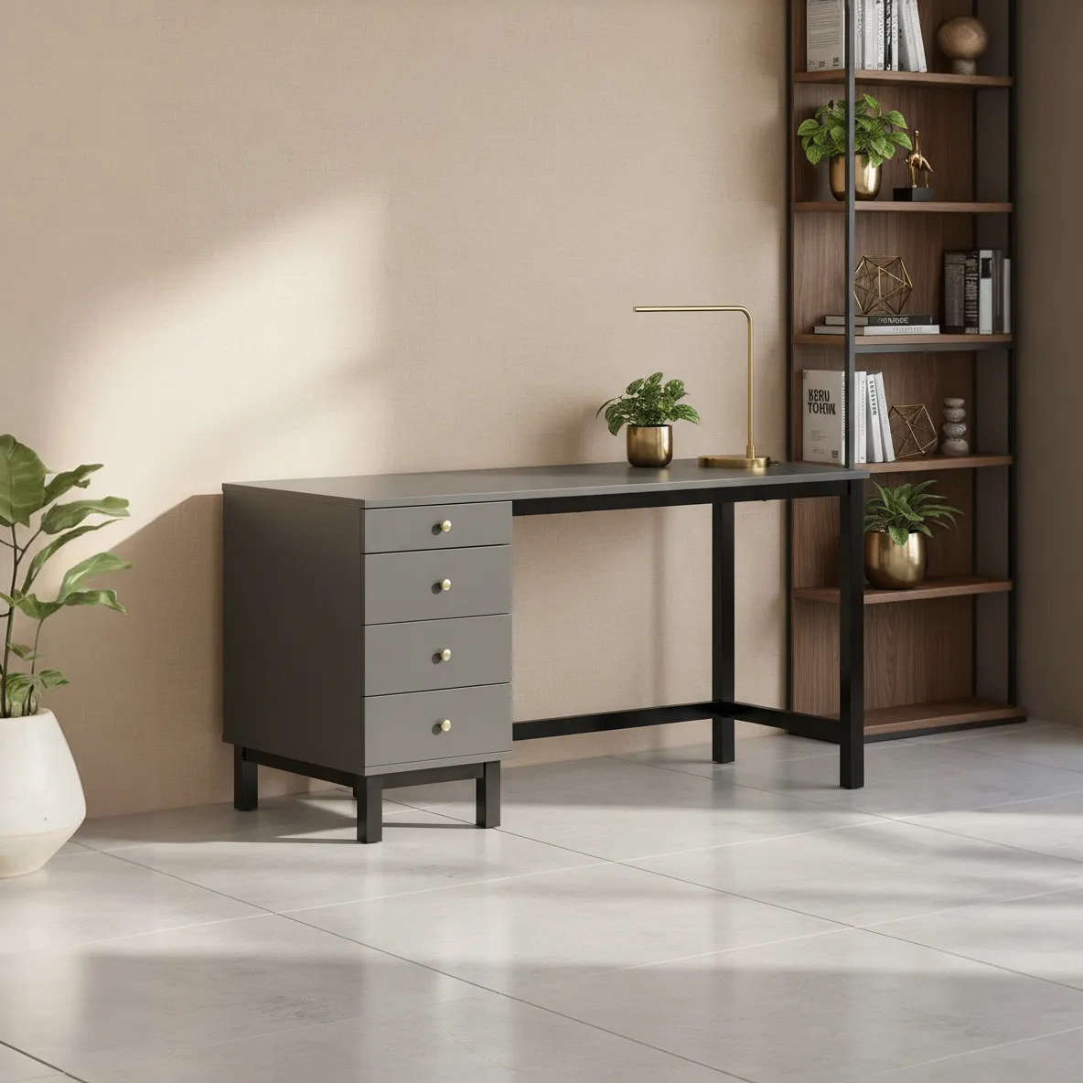 Biurko z czterema szufladami VERYSIMPL B-MODEL-4 — nowoczesne biurko z kontenerem 39 cm
