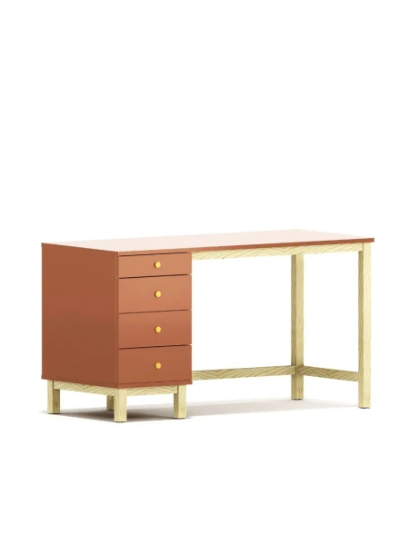 Kontener z czterema szufladami możemy przygotować po lewej lub prawej stronie biurka — opcję wybierzesz w konfiguratorze.