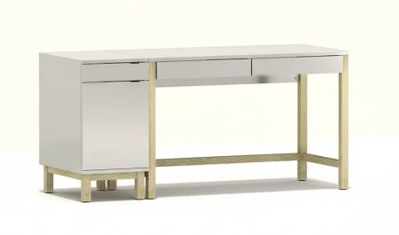 Zestaw B+D-MODEL-5, białe biurko VERYSIMPL MODEL-5 na drewnianym stelażu z dostawką