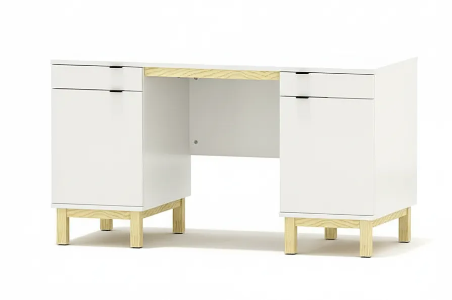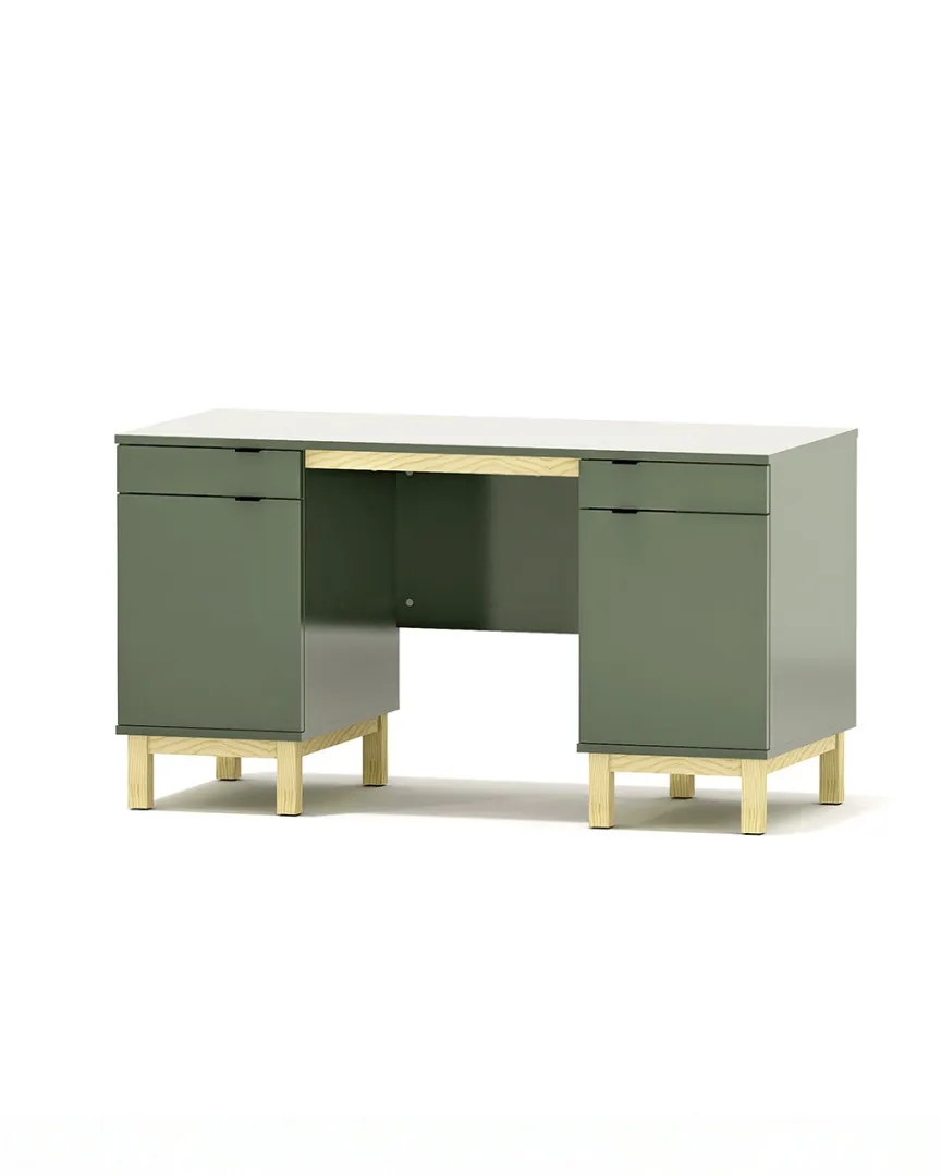 - Minimalistyczne biurko z dwoma szafkami i szerokim blatem 140–160 cm. Stabilna konstrukcja z płyty 18 mm i drewna, pełny wysuw, cichy domyk, szeroki wybór kolorów. Możliwość konfiguracji i wykonania biurka na wymiar.