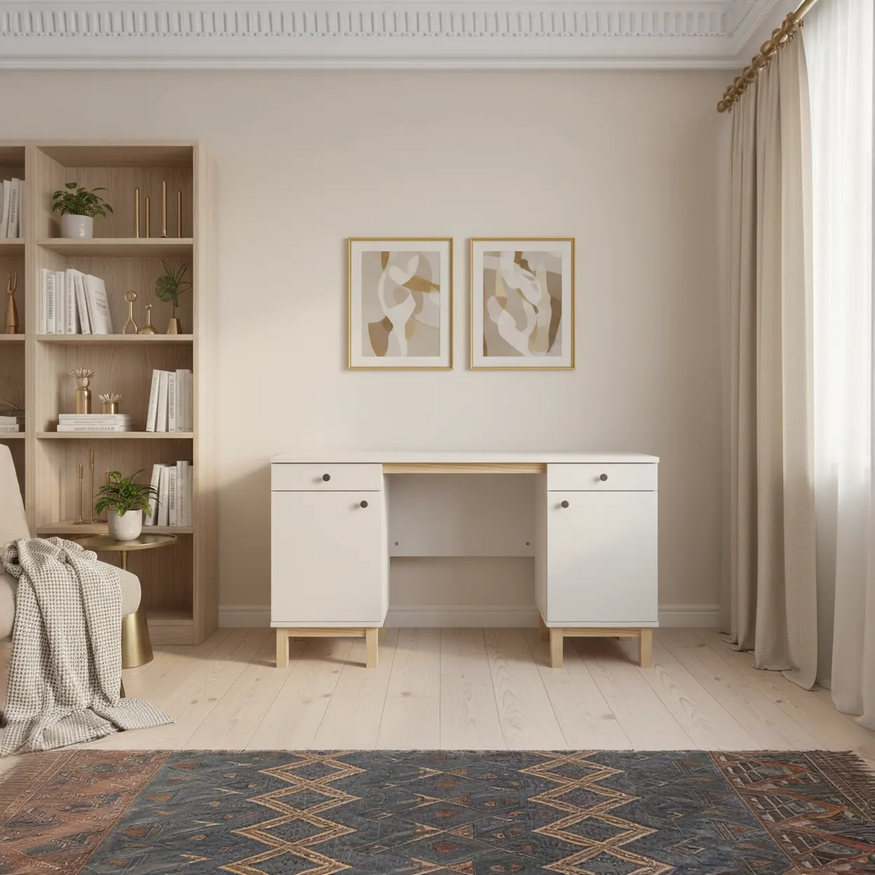Biurko z szafkami B-MODEL-1 — wymiary, ustawienie i styl wnętrza