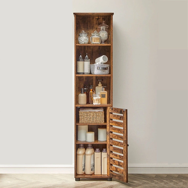 Słupek łazienkowy - Brązowa szafka łazienkowa - Wąski regał łazienkowy - VASAGLE BBK160X01V1