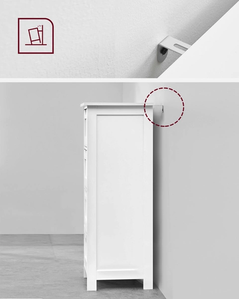 ☑️ Proszę przytwierdzić mebel do ściany dołączonym do zestawu produktem zabezpieczającym go przed przewróceniem.