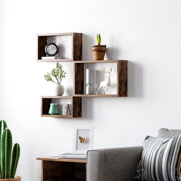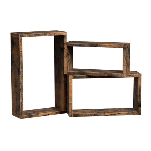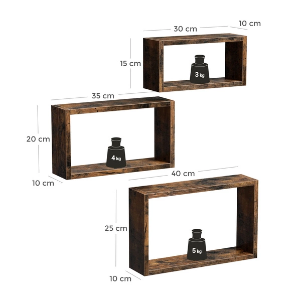 Kwadratowe półki na ścianę CUBE - Brązowe półki ścienne 3 sztuki - VASAGLE LWS094X01