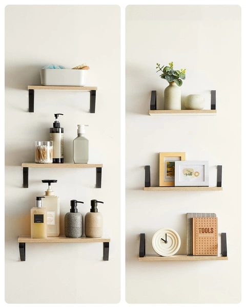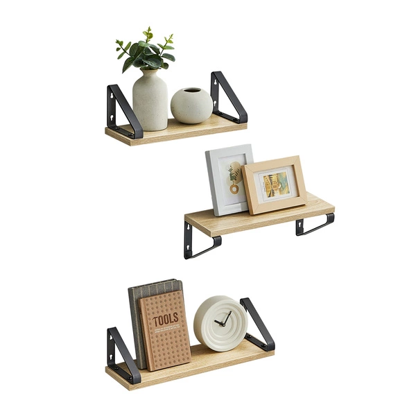 Półki ścienne do salonu - Wiszące półki na ścianę - Zestaw półek (Dąb Sonoma) VASAGLE LWS033B11