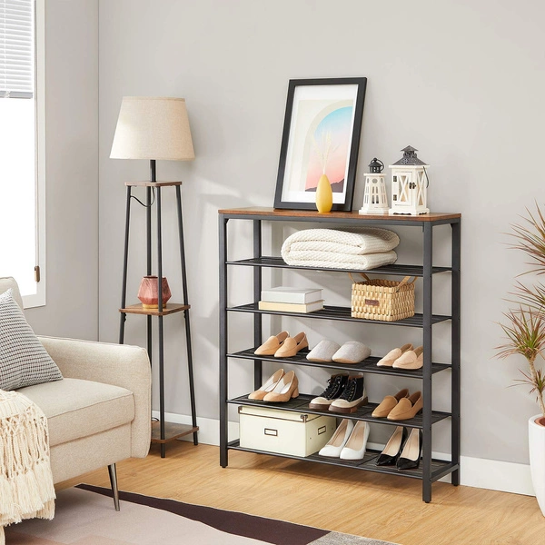 - Industrialny regał na buty z półką to praktyczny i elegancki mebel, który znajdzie swoje zastosowanie w przedpokoju, korytarzu, garderobie, sypialni czy też holu.