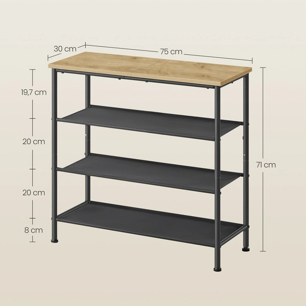 - Odległość między półkami na buty: 20 cm