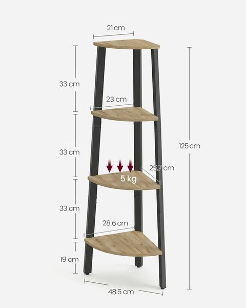 NAROŻNY REGAŁ NA KSIĄŻKI 4 PÓŁKI - DĄB ARTISAN