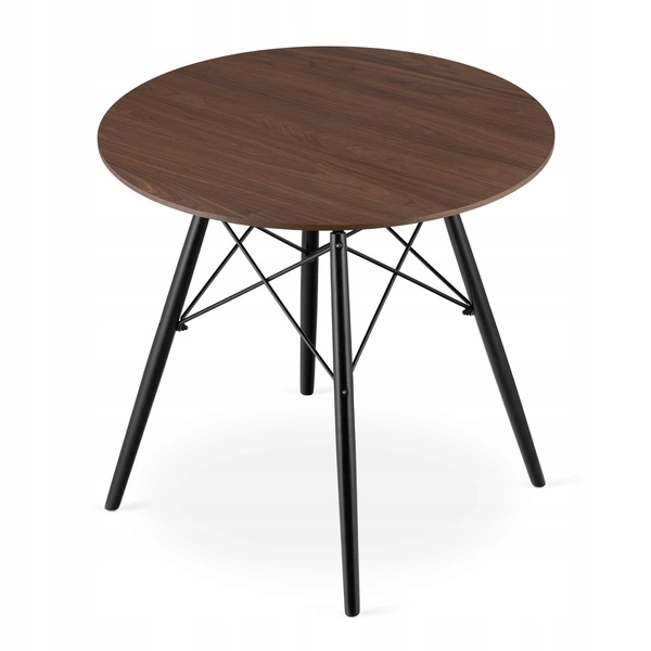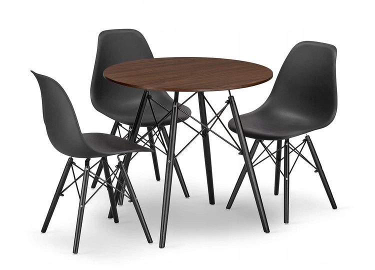 Nowoczesny zestaw stół i 3 krzesła: Brązowy okrągły stół TODI 80cm i 3 czarne krzesła OSAKA