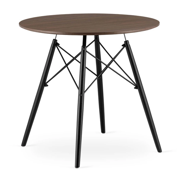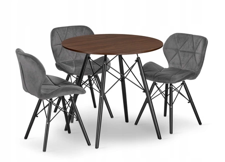 Nowoczesny zestaw stół i 3 krzesła: Brązowy okrągły stół TODI 80cm i 3 szare krzesła LAGO