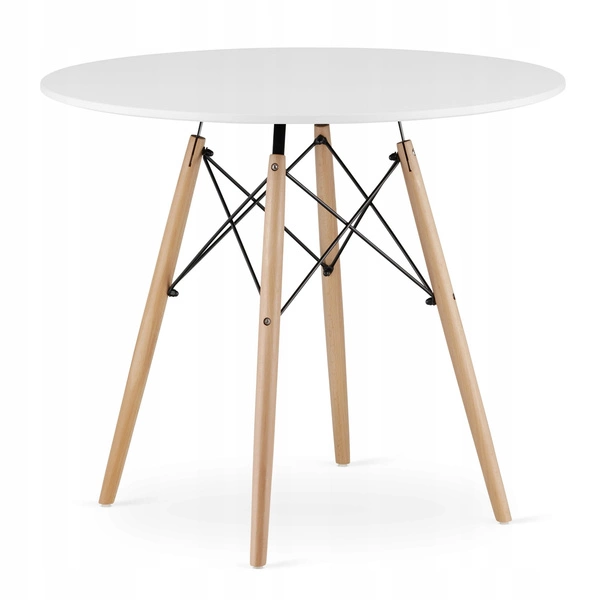 Skandynawski zestaw stół i 4 krzesła: Biały okrągły stół TODI 90cm i 4 białe krzesła OSAKA