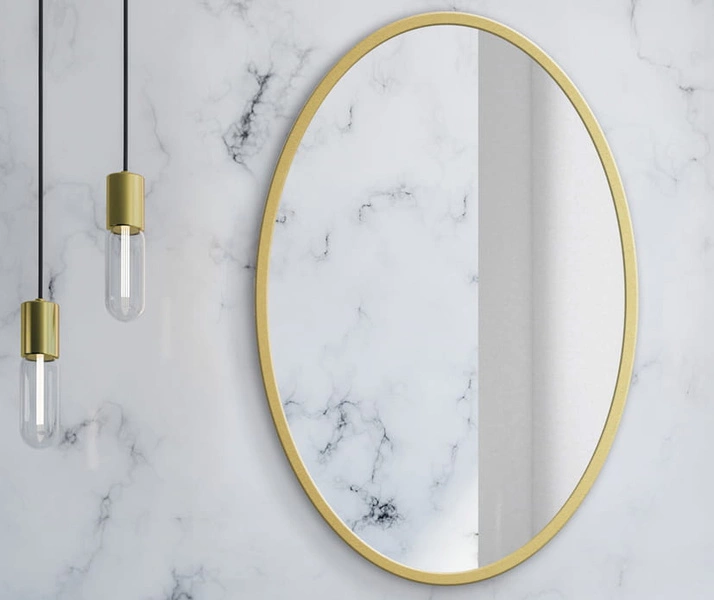 Ramę wykonano z metalu, a następnie została ona pomalowana proszkowo na złoto. Rama lustra jest łatwa w utrzymaniu czystości - wystarczy ją przetrzeć wilgotną szmatką.