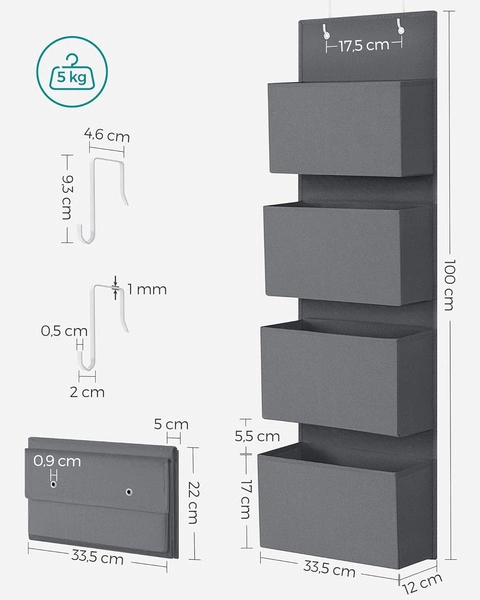 - Wymiary organizera: 33,5 x 12 x 100 cm (szerokość x głębokość x wysokość)