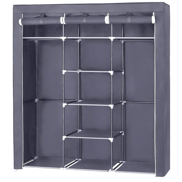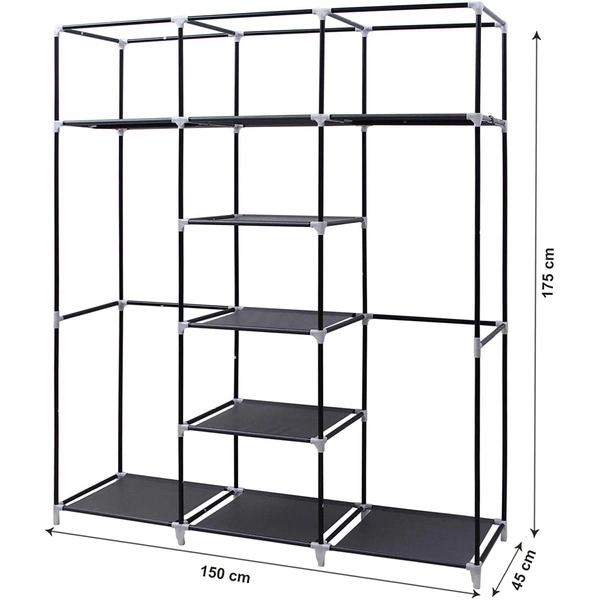 Wyjątkowo praktyczna, składana garderoba, posiada 9 półek, które zostały wyprodukowane z wodoodpornego materiału oraz 2 drążki do zawieszania ubrań.