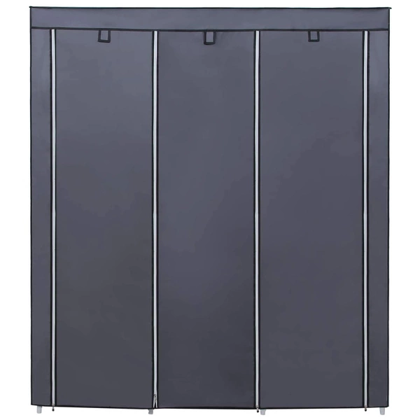 Tekstylna, trzydrzwiowa szafa na ubrania wykonana z metalowych rurek, które stanowią jej stelaż oraz wysokiej jakości materiałów, łatwych do utrzymania w czystości. Poszycie szafki wykonane jest z oddychającego i wodoodpornego materiału zasuwanego na zamki błyskawiczne.