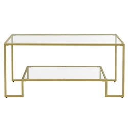 Ława do salonu ze szklanym blatem - Złoty, szklany stolik do salonu GLAMOUR VASAGLE LGT033A01
